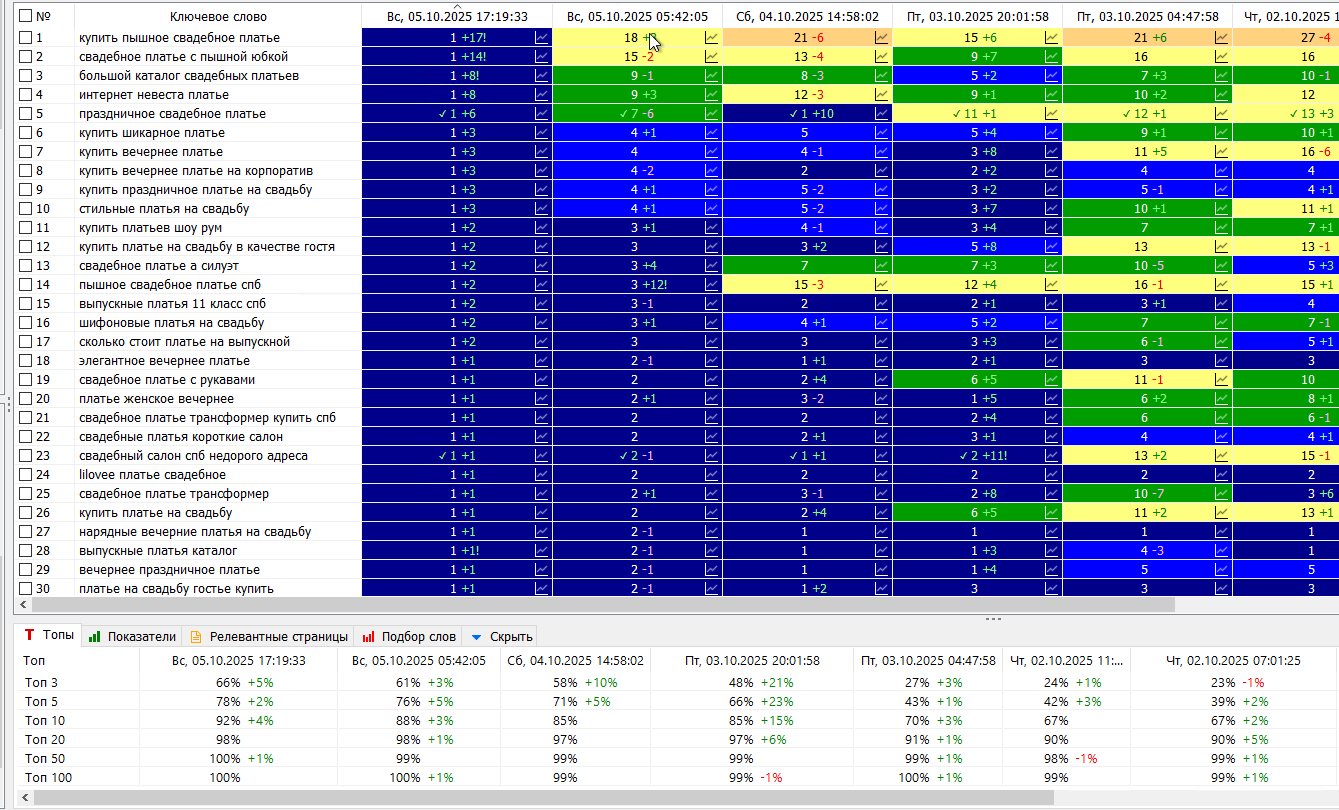 - Средняя позиция: рост до 2,78 с 6,73 (месячный «!WS» по Санкт-Петербургу ≈ 9 000 для 1 424 запросов).